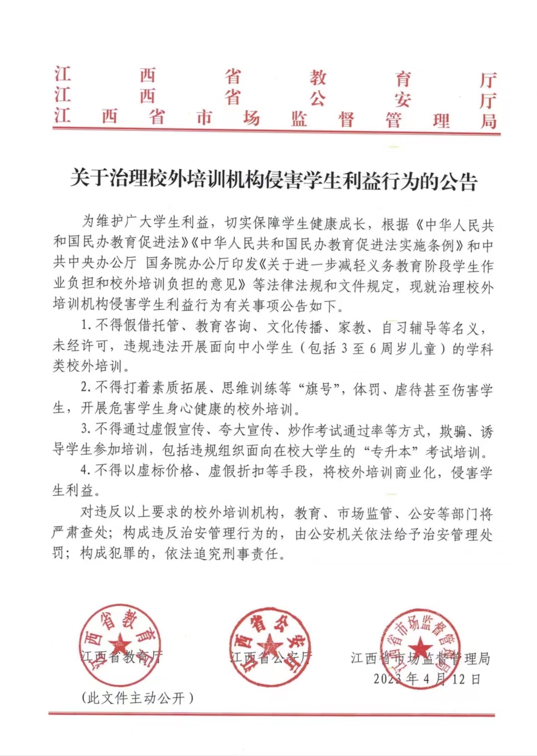 关于治理校外培训机构侵害员工利益行为的公告