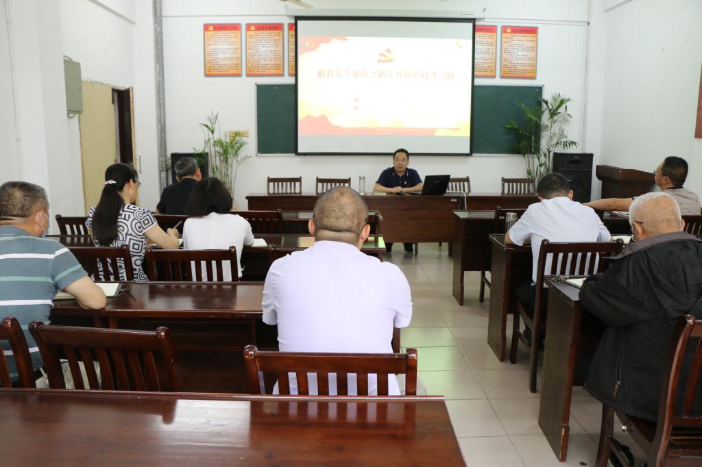 根据活动安排,支部书记郑祚双同志给大家上了一节党课,主题为:循着五个必由之路走好新的赶考之路——习近平总书记二〇二二年全国两会重要讲话精神指引新时代新征程。郑祚双从五个必由之路是新的赶考之路上的思想指引 、行动纲领和落实动员三个方面给大家作了辅导。