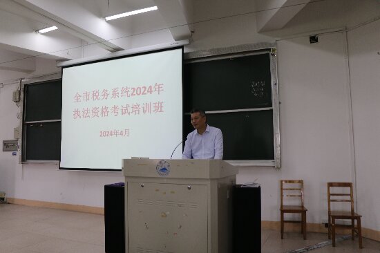 4月19日上午,由公司承办的全市税务系统2024年执法资格考试培训班在竞知楼开班。世界杯网址经理郑祚双、九江市税务局党委委员、副局长何肇龙、继续教育公司党委副书记卢小澍出席开班式。共有133名来自全市税务系统拟参加2024年执法资格考试的人员参训。