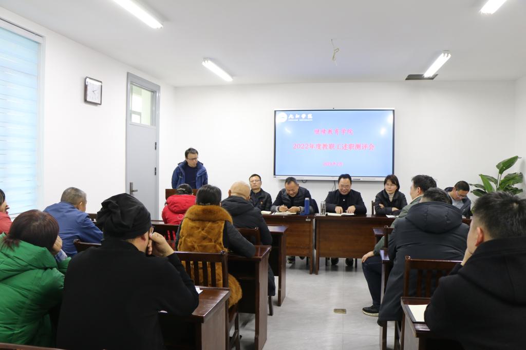 2月22日下午,学院召开全院教职工大会暨2022年度教职工述职测评会。