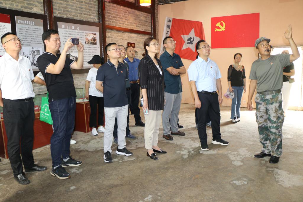 退役军人、彭湾村红色文化讲解员邓见亮引导大家参观赤湖游击队指挥部旧址,并讲述了赤湖游击队那段艰苦卓绝的革命历程和革命小故事。